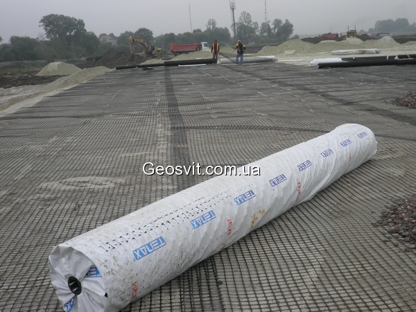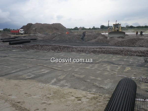 Двухосная жесткая георешетки имеют одинаковые силовые характеристики как по длине так и по ширине рулона, поэтому для армирования зернистых слоев дорожной одежды либо повышения несущей способности слабых оснований полотна георешетки могут укладываться как параллельно так и перпендикулярно оси земляного полотна.